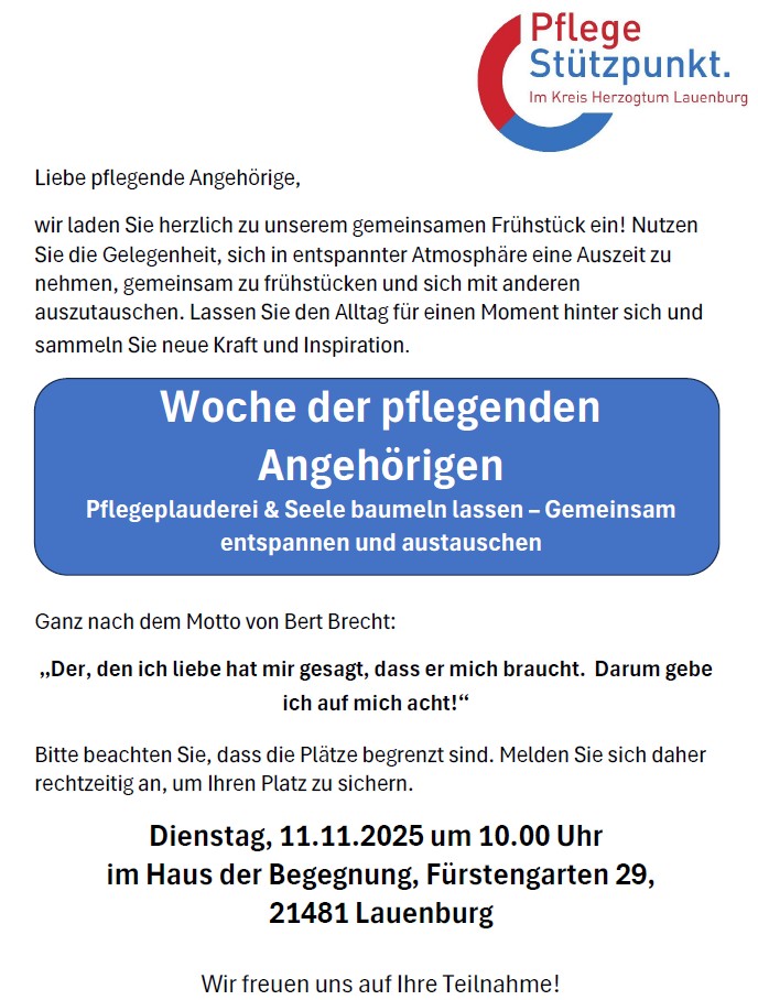 Eine solche Möglichkeit bietet der Gesprächskreis für Angehörige von Menschen mit Demenz, der von der Alzheimer Gesellschaft Ratzeburg begleitet wird.