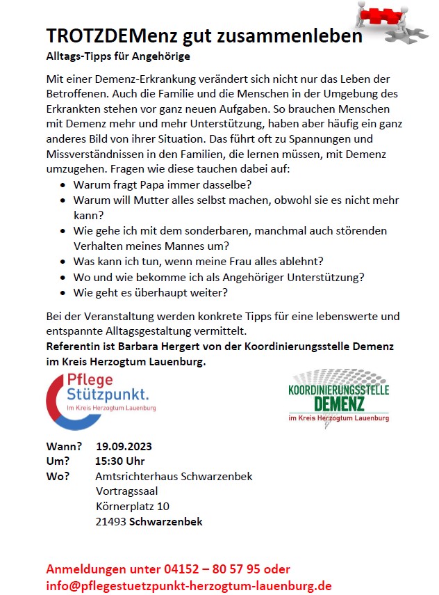 Schwarzenbek - Woche der Demenz Vortrag: TROTZDEMENZ gut zusammenleben