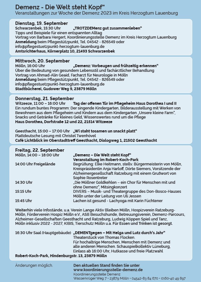 Vor und nach der Vorstellung steht den Besuchern ein Informationsstand der Alzheimer Gesellschaft im Herzogtum Lauenburg e.V. zur Verfügung.