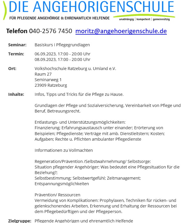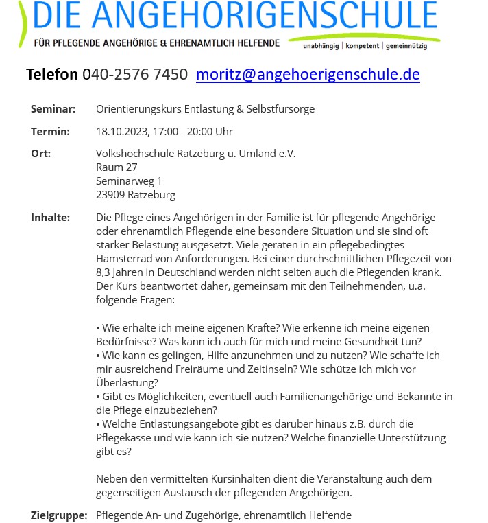 Mölln - Vortrag Pflegestützpunkt: Wenn die Eltern älter werden