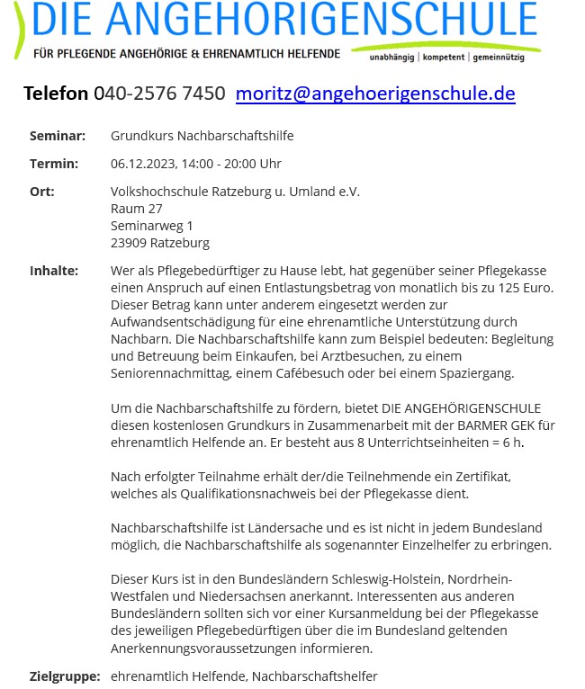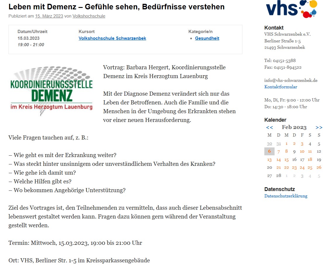 Schwarzenbek - Vortrag Demenz Volkshochschule