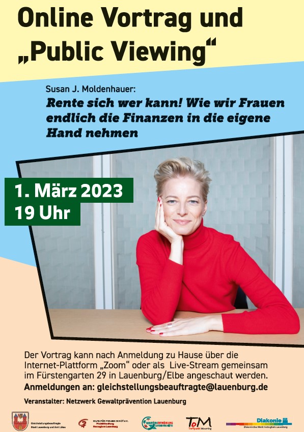 Lauenburg - Vortrag Susan J. Moldenhauer - Rente sich wer kann! ONLINE und Public Viewing!